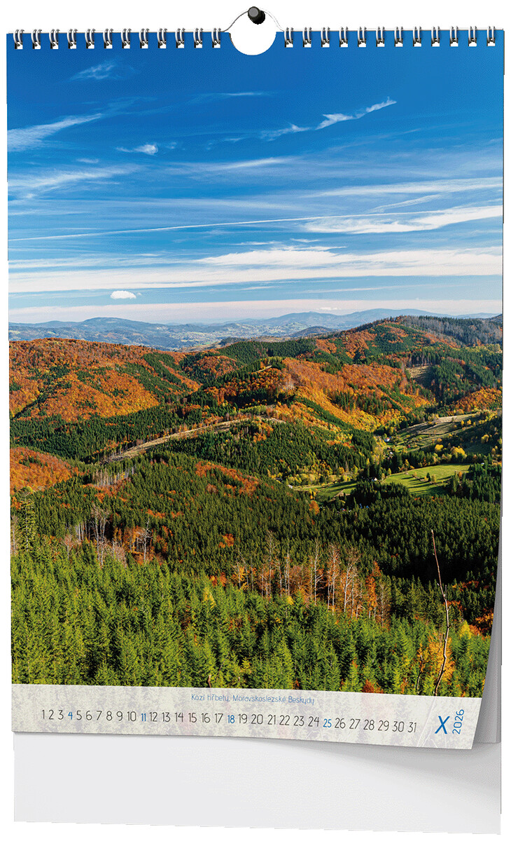 Nástěnný kalendář s obrázky krásných hor Čech a Moravy.