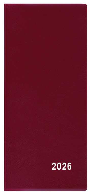 Jednoduchý a praktický měsíční diář vyrobený z jemného hladkého materiálu s polomatným povrchem v barvě bordó. Ideální pro každého, kdo si oblíbil měkkou šitou vazbu.