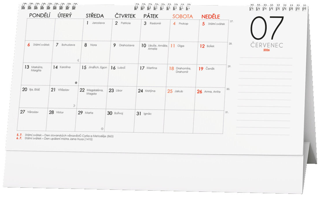 Výjimečný stolní kalendář s přehledným měsíčním kalendáriem a prostorem na poznámky.