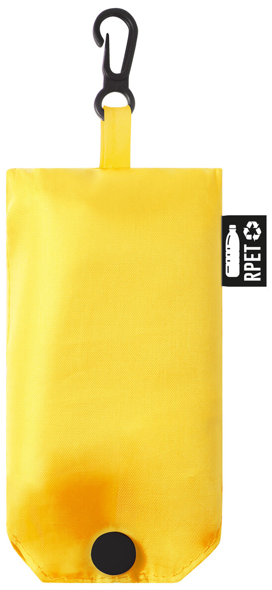 Skládací nákupní taška z RPET polyesteru, s etiketou s označením RPET.