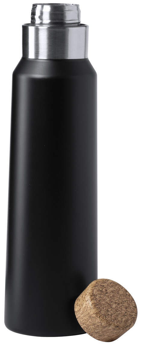 Jednostěnná sportovní láhev z nerezové oceli s korkovým vzorovaným uzávěrem, 770 ml. V kraftové papírové krabici. Nevhodné pro sycené nápoje.