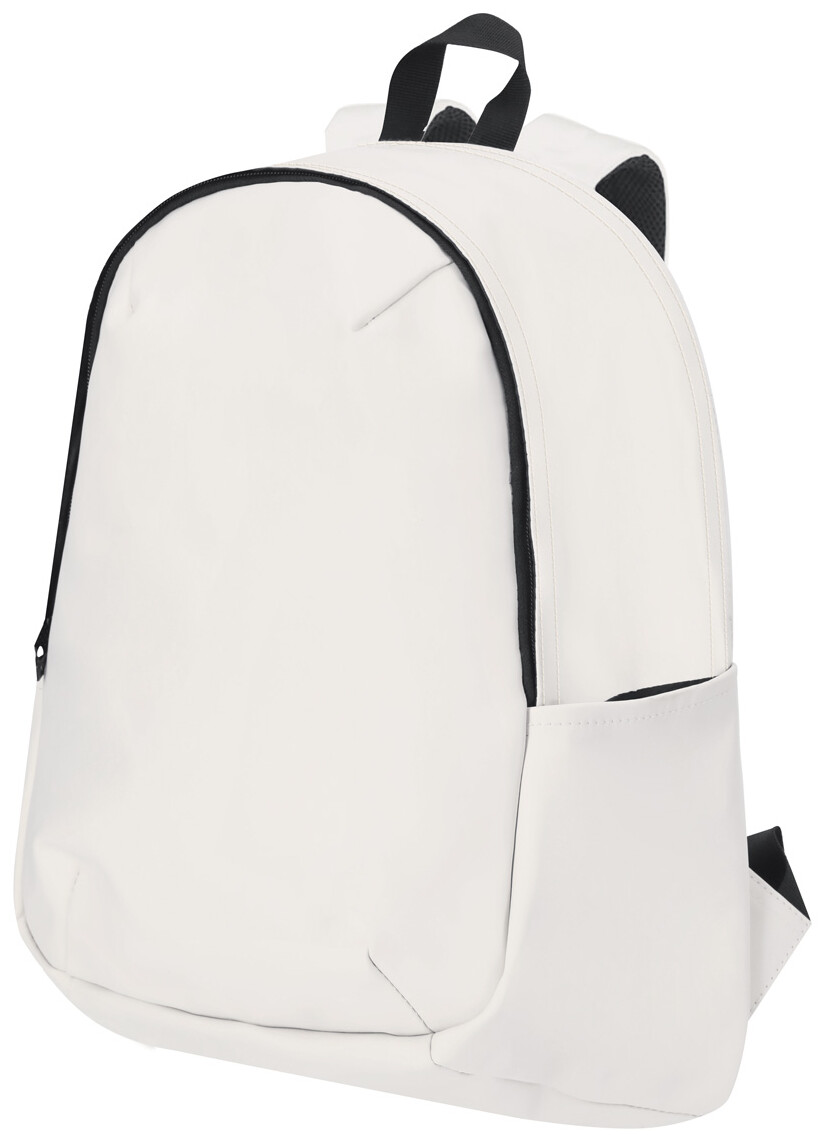 Batoh z měkké PU kůže s přihrádkou na zip, polstrovanou přihrádkou na notebook (15"), bočními kapsami, polstrovanými zády a ramenními popruhy.