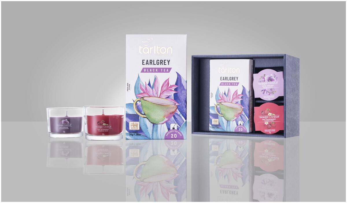 svíčky YC.votiv ve skle 37g - Wild Orchid a Red Raspberry, TARLTON Black Earl Grey přebal 20x1,5g
