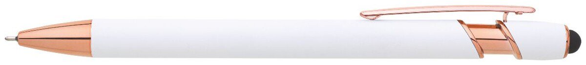 Kovová propiska s bílým soft povrchem – elegantní psací potřeba s doplňky v růžovo-zlaté barvě, která kombinuje moderní design a funkčnost. Vhodná pro každodenní použití i jako stylový dárek.