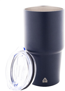 Dvoustěnný vakuově izolovaný termohrnek z recyklované nerezové oceli s víčkem z polystyrenového plastu. 600 ml.