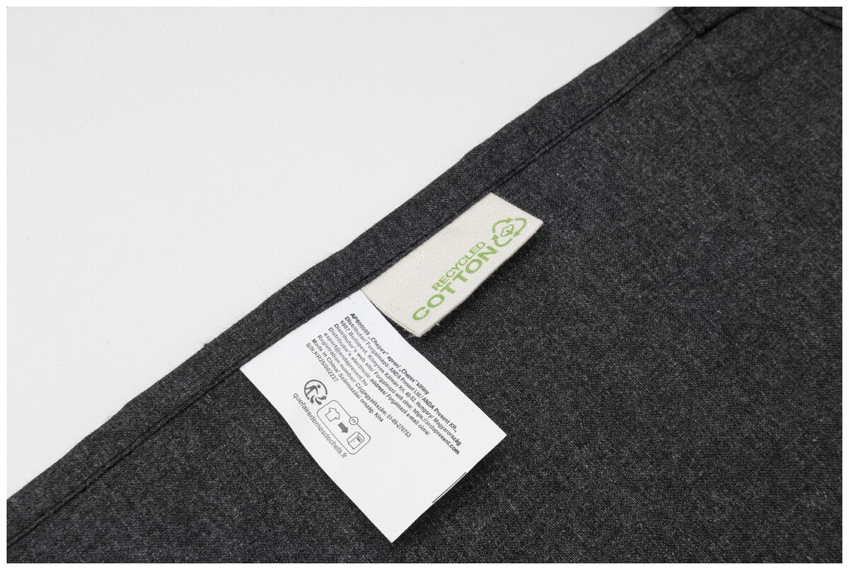 Kuchyňská zástěra ze 70% recyklované bavlny a 30% RPET polyesteru, 180 g/m2.