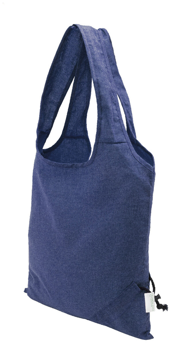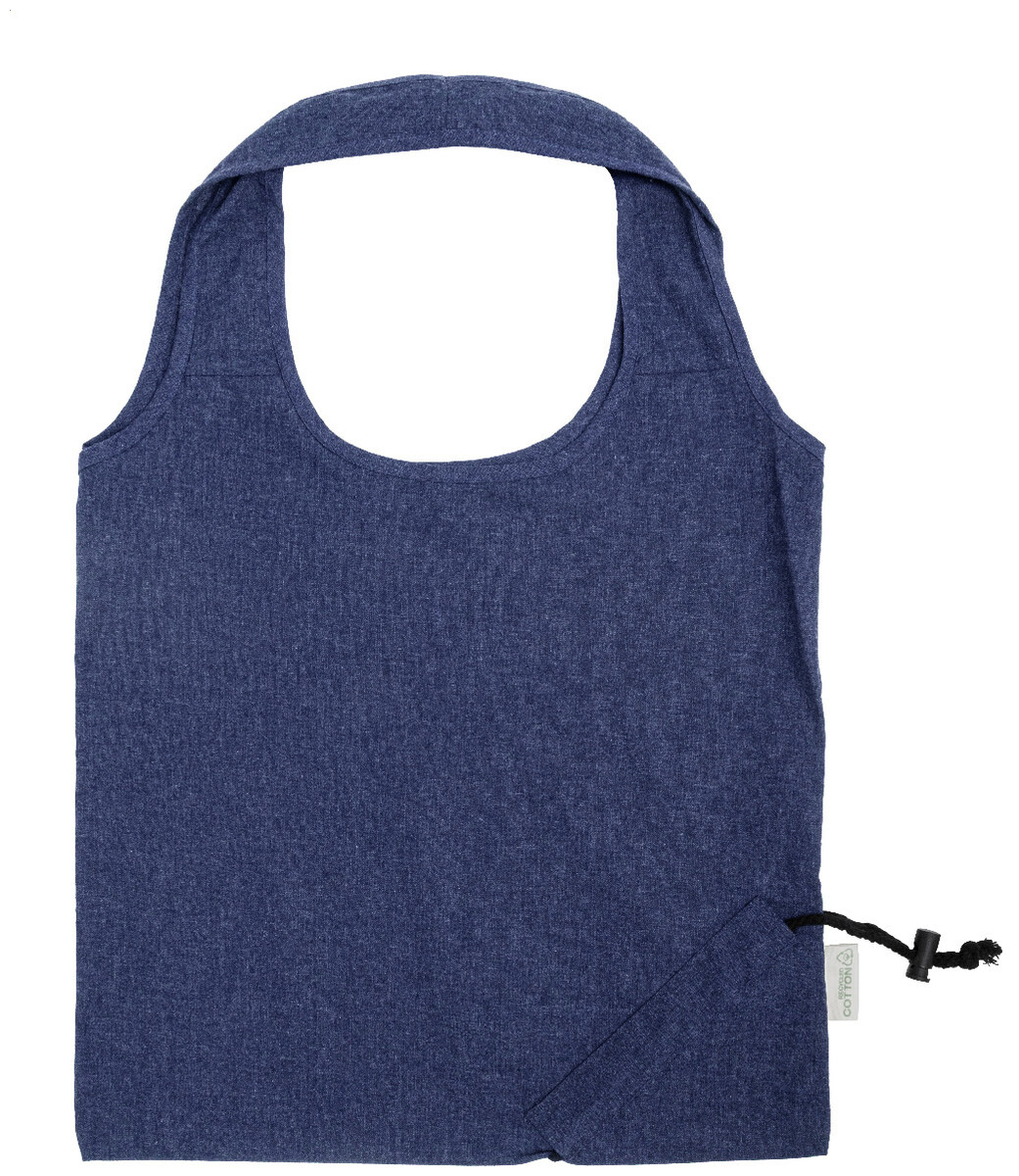 Skládací nákupní taška ze 70 % recyklované bavlny a 30 % polyesteru RPET, 140 g/m2. S výrazným štítkem z recyklované bavlny.