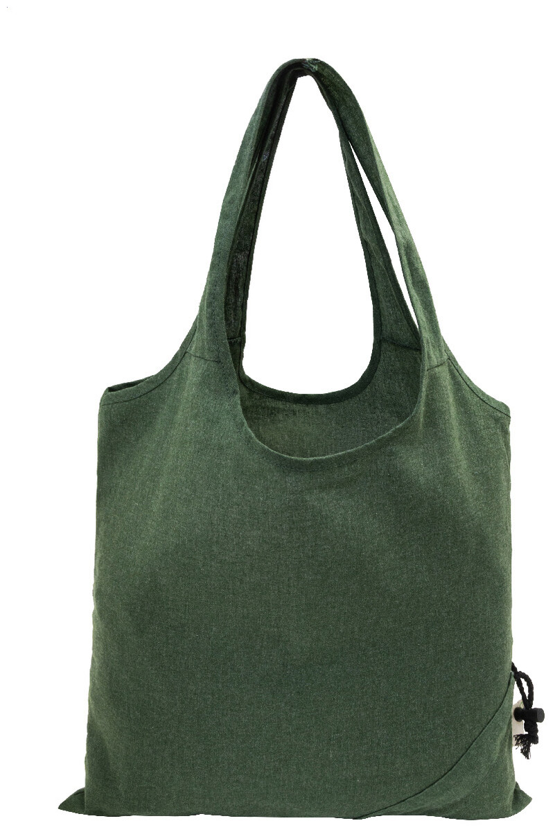Skládací nákupní taška ze 70 % recyklované bavlny a 30 % polyesteru RPET, 140 g/m2. S výrazným štítkem z recyklované bavlny.