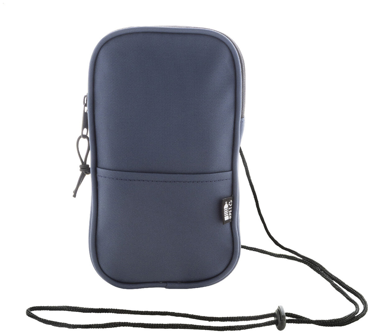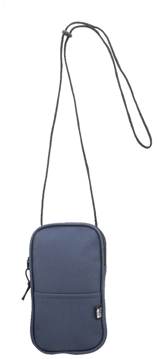 Voděodolná RPET crossbody taška na mobilní telefon s hlavní přihrádkou na zip, přední kapsou a nastavitelnou šňůrkou. Polyester RPET 600D potažený PU, s výrazným štítkem RPET.