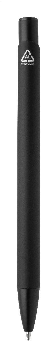 Kuličkové pero z recyklovaného hliníku s pogumovaným tělem a barevnými lesklými kovovými díly. Se speciálním povrchem pro zrcadlové gravírování, které odpovídá kovovým částem. S modrou náplní.