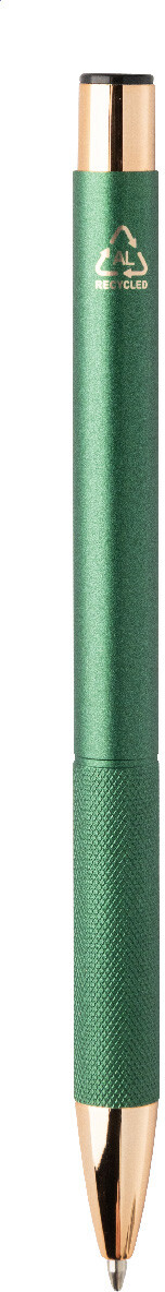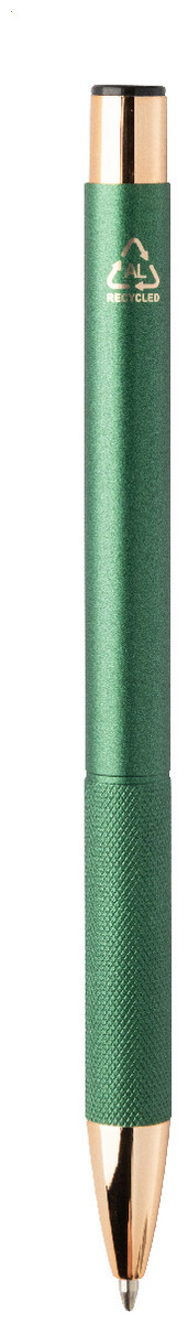Kuličkové pero z recyklovaného hliníku s matným tělem, texturovaným úchopem a detaily růžového zlata. Se speciálním povrchem pro zrcadlové laserové gravírování v barvě růžového zlata. S modrou náplní.