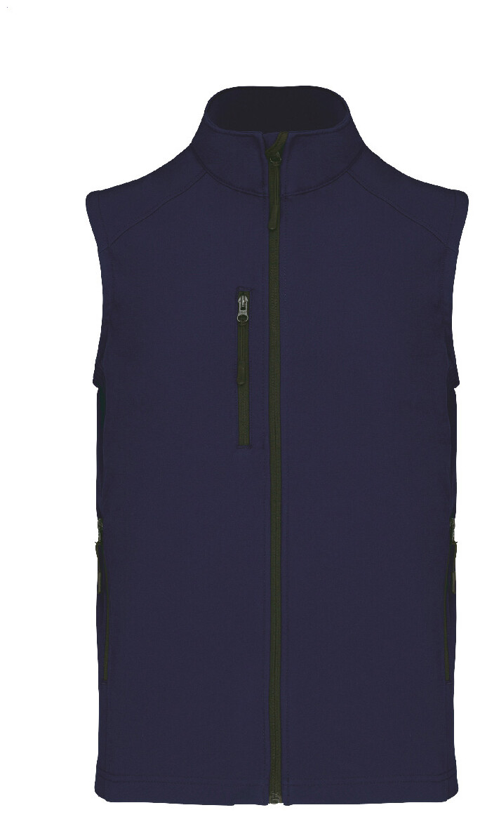 Třívrstvá, prodyšná, větru a voděodolná softshellová vesta na tělo se zipem a náprsními a bočními kapsami na zip. S prodyšnou střední vrstvou a vnitřní vrstvou z micro polar fleecu. Materiál: 95 % polyester a 5 % elastan, 300 g/m2. Výrobek značky Kariban.