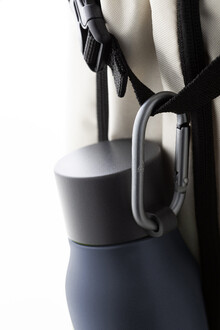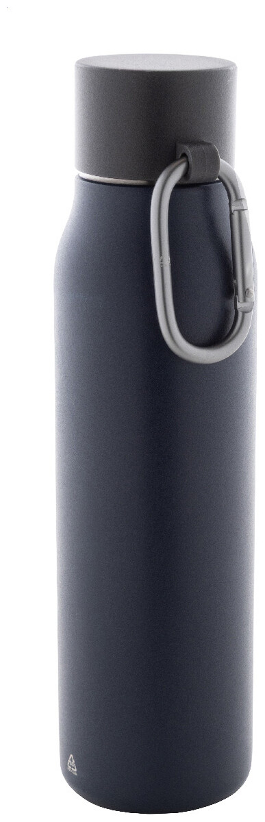 Dvoustěnná vakuová láhev z recyklované nerezové oceli s víčkem z PP a karabinou z recyklovaného hliníku. 500 ml.
