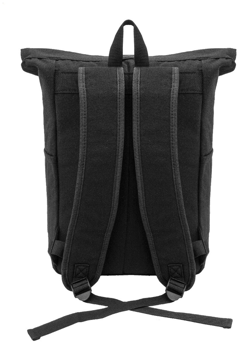 Rolovací batoh z recyklovaného plátna se zapínáním na přezku a přední kapsou na zip z měkké recyklované PU kůže. S polstrovanou přihrádkou na notebook (15"), bočními kapsami, polstrovanými zády a ramenními popruhy. 70% recyklované bavlny a 30% RPET polyesteru. S výrazným štítkem z recyklované bavlny.