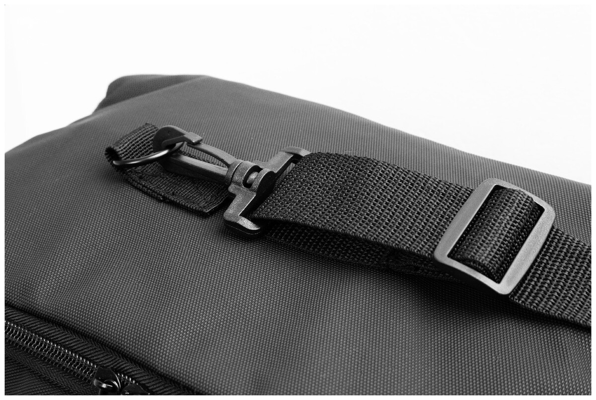 Voděodolný batoh a taška na dokumenty z RPET s dvojitou funkcí, hlavní přihrádkou na zip, dvěma předními kapsami na zip, boční kapsou, bočními popruhy s přezkou a polstrovanou přihrádkou na notebook (15"). S polstrovanými zády a odnímatelnými ramenními popruhy. Součástí je i další odnímatelný ramenní popruh pro použití jako taška na dokumenty. Polyester 600D RPET s PU zátěrem a výrazným štítkem RPET.
