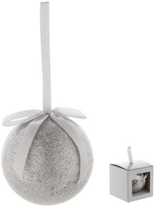 Třpytivá ozdoba vánoční koule z PU pěny s otvorem na stuhu. Průměr kuličky: 75 mm. V papírové dárkové krabičce v odpovídající barvě.