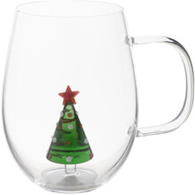 Hrnek z borosilikátového skla s trojrozměrnou ozdobou vánočního stromečku, 550 ml. V kraftové papírové krabici.