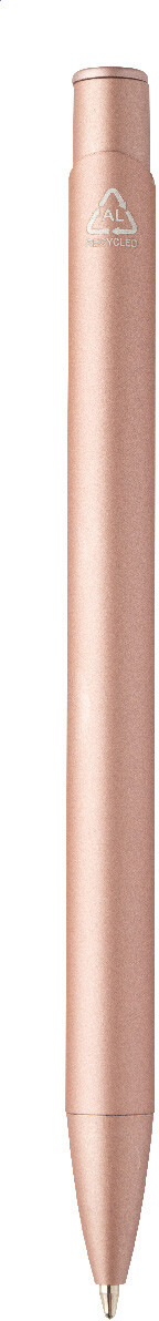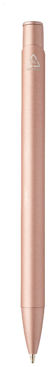 Kuličkové pero z recyklovaného hliníku s pogumovaným tělem a barevnými lesklými kovovými díly. Se speciálním povrchem pro zrcadlové gravírování, které odpovídá kovovým částem. S modrou náplní.