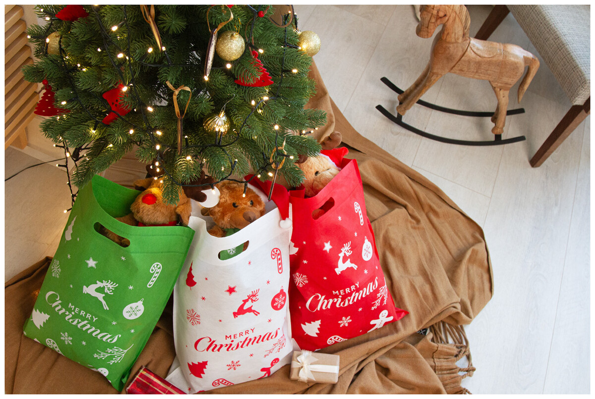 Nákupní taška z netkané textilie RPET s vánočním designem a vysekávanými uchy, 80 g/m2.