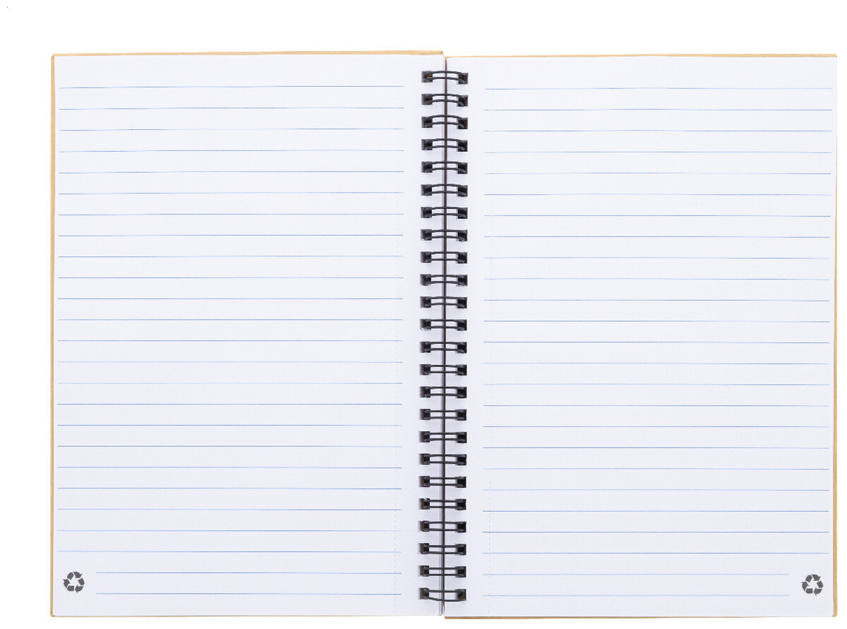 Spirálový blok A5 s 80 linkovanými listy z recyklovaného papíru.