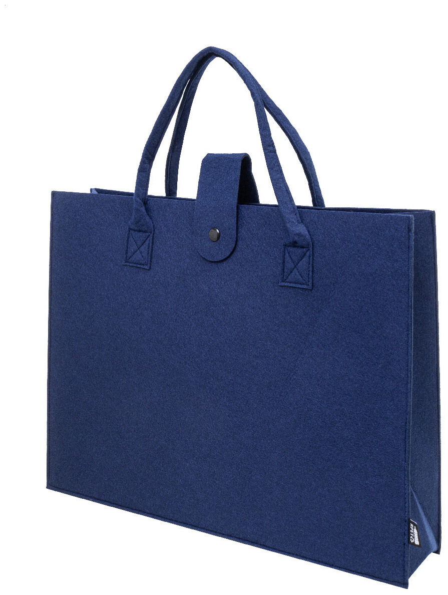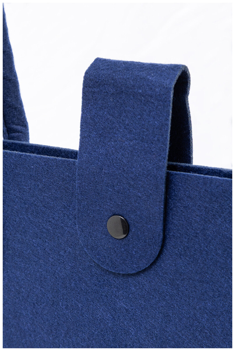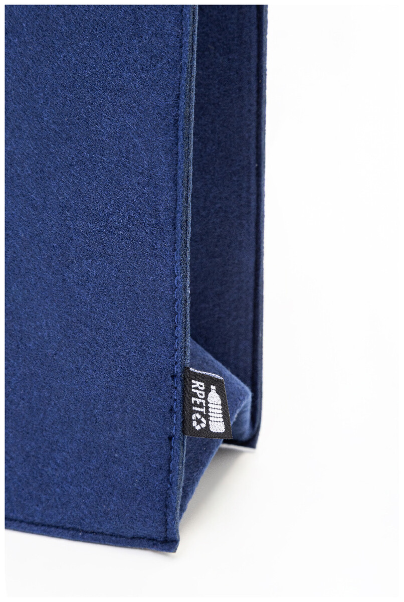 Nákupní taška z RPET plsti s klínkem, zapínáním na knoflíky a krátkými uchy. S výraznou etiketou z RPET.
