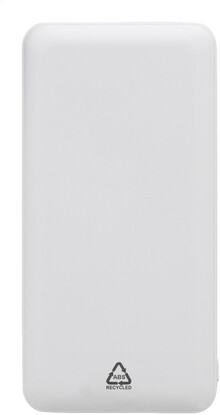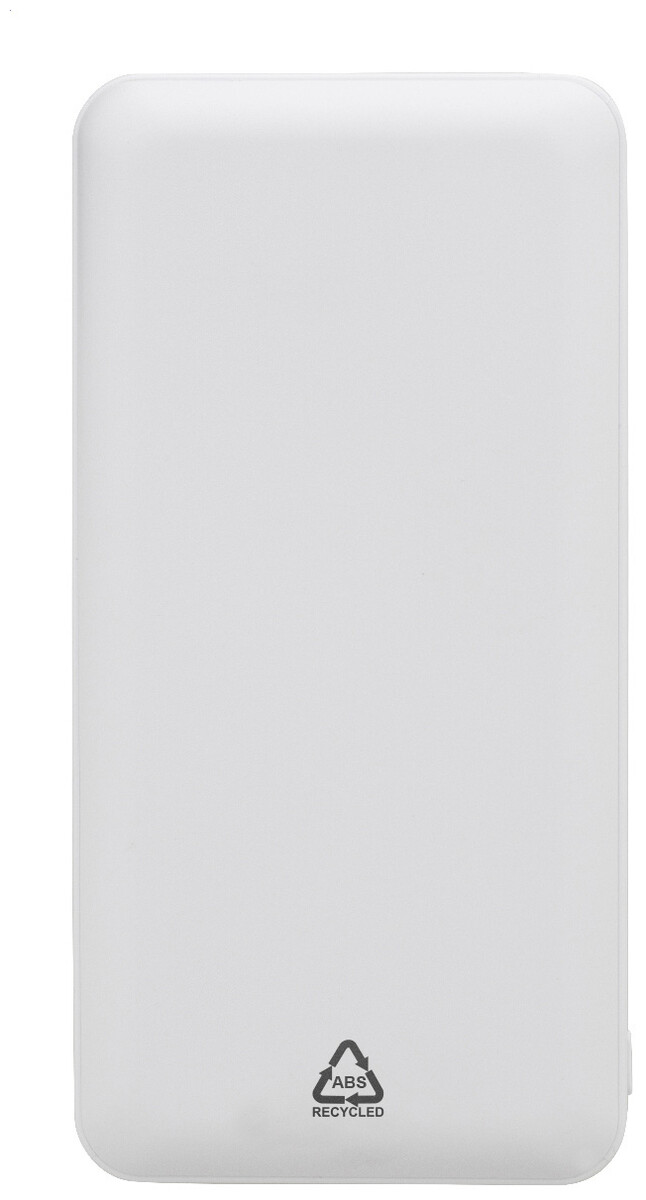 Power banka z recyklovaného ABS plastu s baterií 20 000 mAh. Se 2 USB a 1 nabíjecím portem USB-C. Vstupní porty micro USB a USB-C. Včetně nabíjecího kabelu USB.
