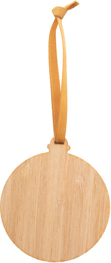 Vánoční ozdoba z bambusové překližky se zlatou stuhou. Dodáváno s oddělenou stuhou.