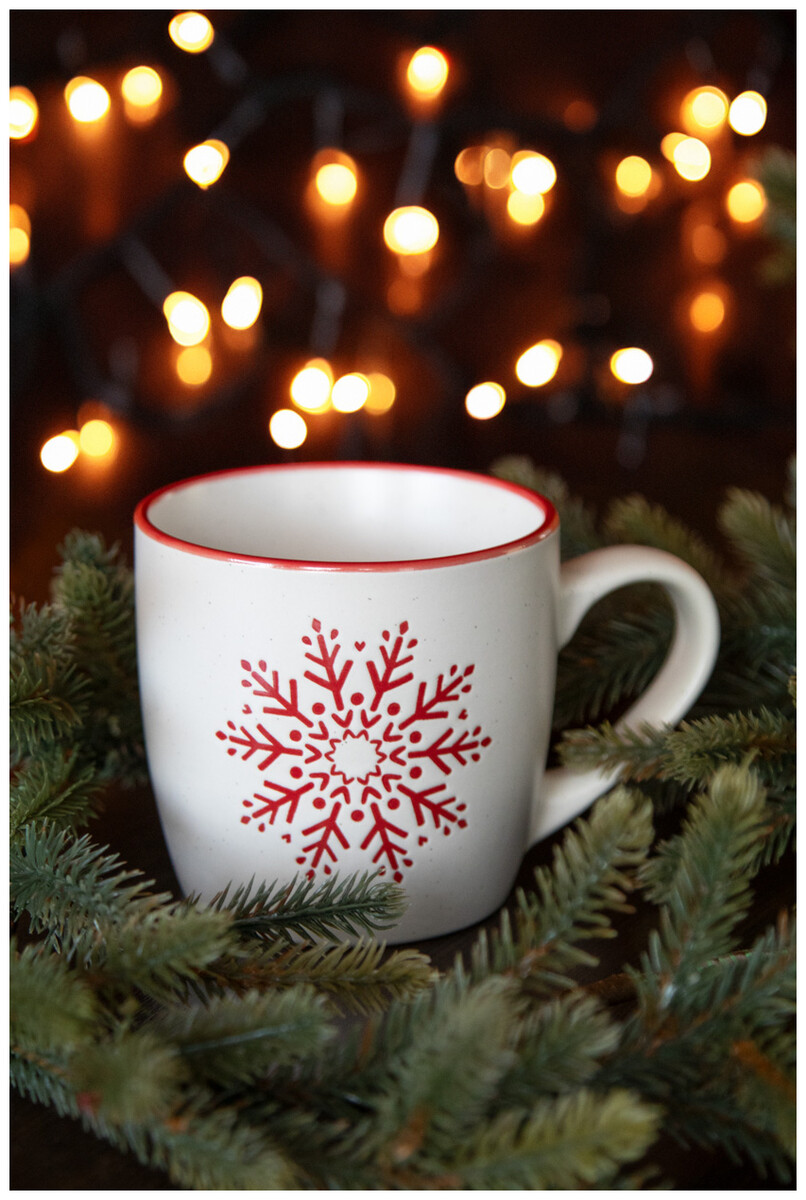 Keramický hrnek s vánočním designem a skvrnitým povrchem, 320 ml. V kraftové papírové krabici.