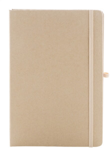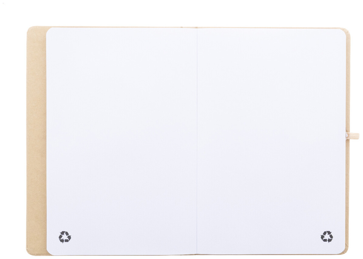 Blok A5 z recyklovaného kartonu s 70 prázdnými listy z recyklovaného papíru. Vnitřní obal obsahuje 25 samolepících papírků, 125 značkovačů stránek a kapsu na vizitky. S gumovým popruhem a držákem na pero.