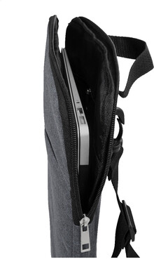 Polstrovaná taška přes rameno z polyesteru 600D RPET na dokumenty nebo notebook s přihrádkou na zip a přední kapsou na zip. Vhodná pro notebooky do velikosti 15". S nastavitelným ramenním popruhem vybaveným vertikální a horizontální polohou. S výrazným štítkem RPET.