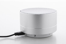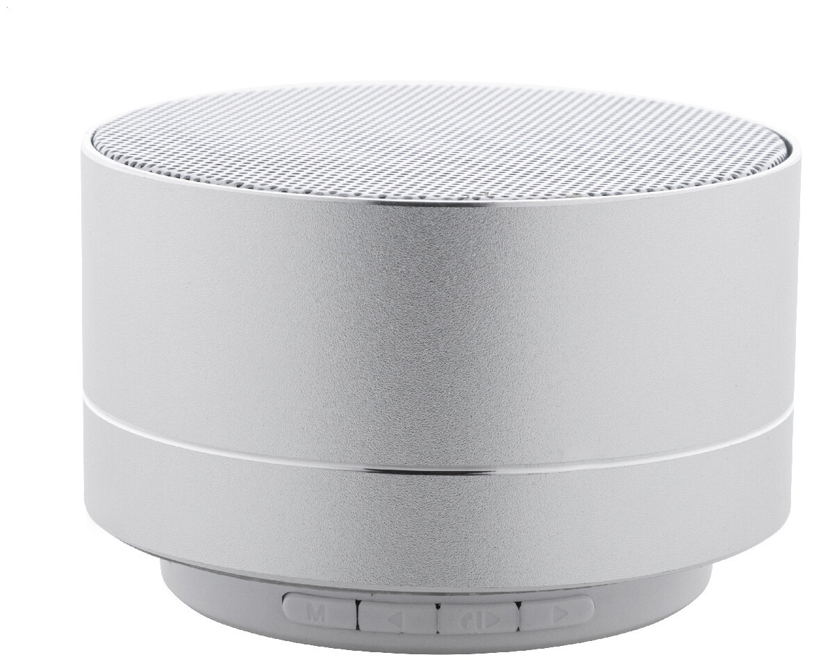 Bezdrátový reproduktor z recyklovaného hliníku s kovovou síťovinou, LED světlem na spodní straně a dobíjecí baterií (300 mAh). S funkcí handsfree hovorů a přehrávání MP3 z micro SD karty. Včetně nabíjecího kabelu USB.