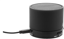 Bezdrátový reproduktor z recyklovaného ABS v pogumovaném pouzdře s kovovou síťovinou a dobíjecí baterií (300 mAh). S funkcí handsfree hovorů a přehrávání MP3 z micro SD karty. Včetně nabíjecího kabelu USB.