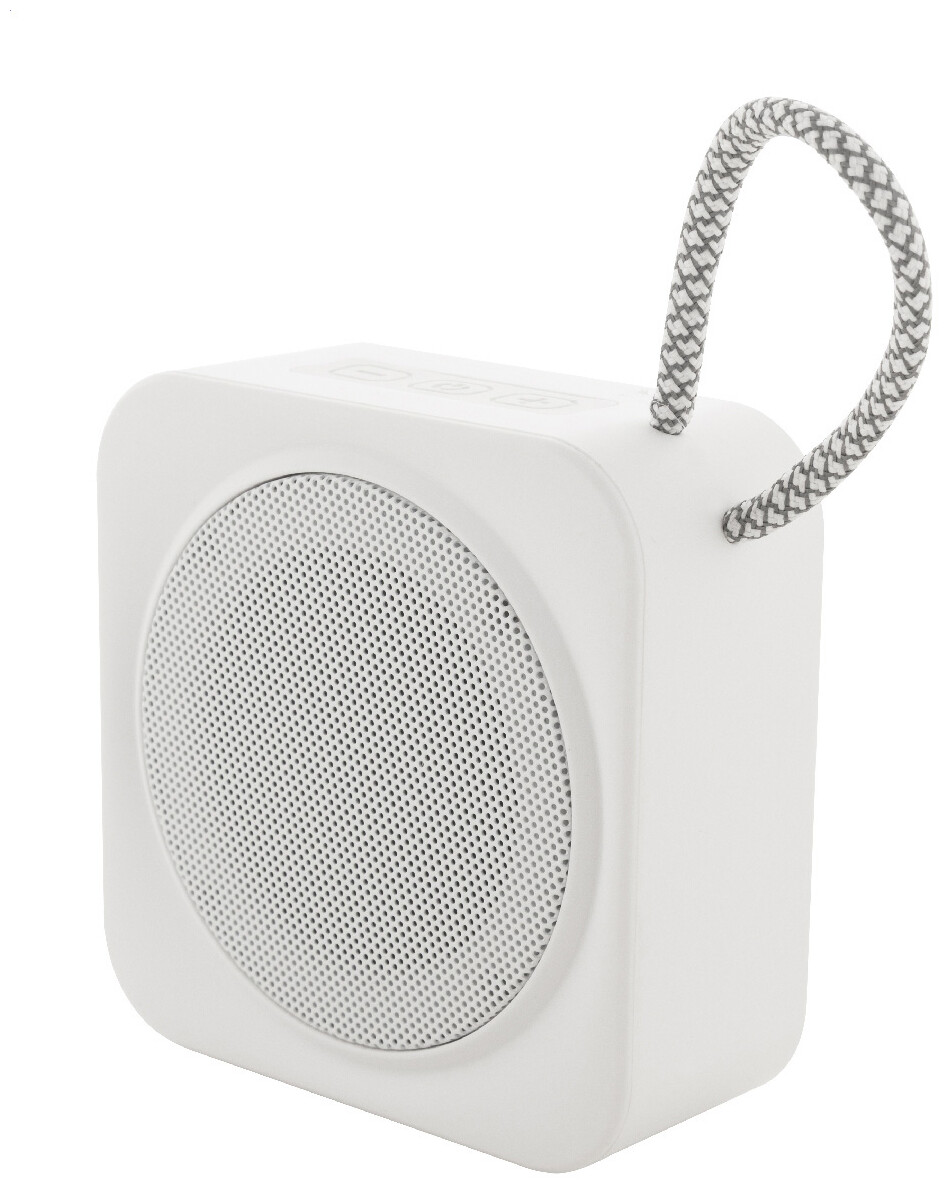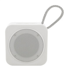 Bezdrátový reproduktor z recyklovaného ABS s popruhem na nošení, kovovou síťovinou a dobíjecí baterií (300 mAh). S funkcí přehrávání MP3 karet micro SD. Včetně nabíjecího kabelu USB.