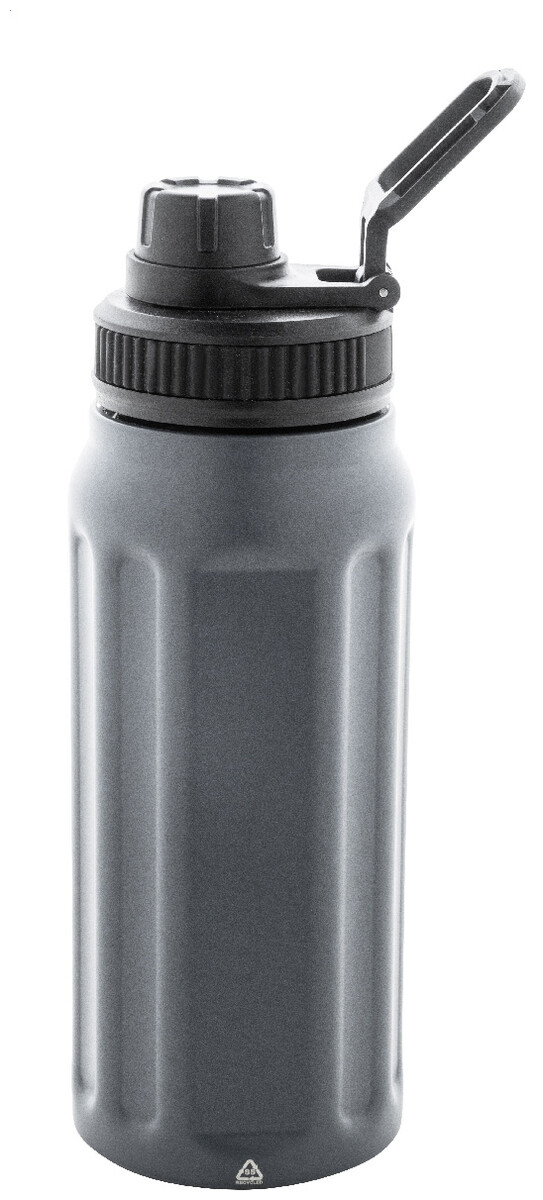 Dvoustěnná termoska z recyklované nerezové oceli s vertikálními drážkami. S víčkem z polypropylenu a s integrovaným držadlem. 540 ml.