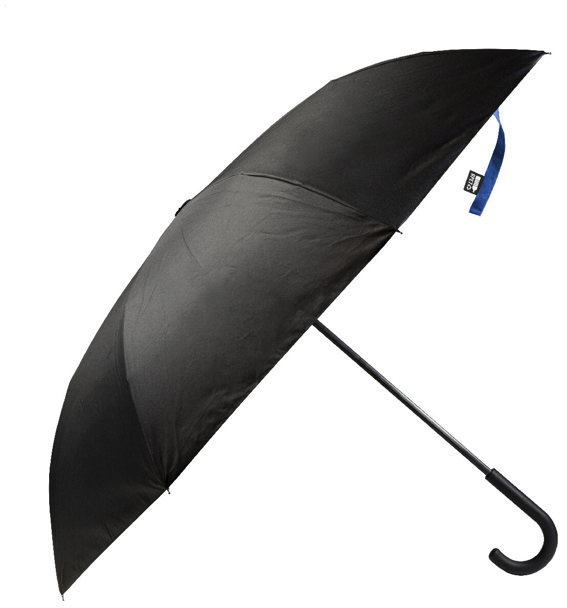 Manuální větruodolný deštník s reverzním otevíráním, 8 panely, dvouvrstvou dvoubarevnou stříškou, kovovým rámem, žebry ze skelných vláken a pogumovanou rukojetí. Materiál: 190T RPET pongee. S výrazným štítkem RPET.
