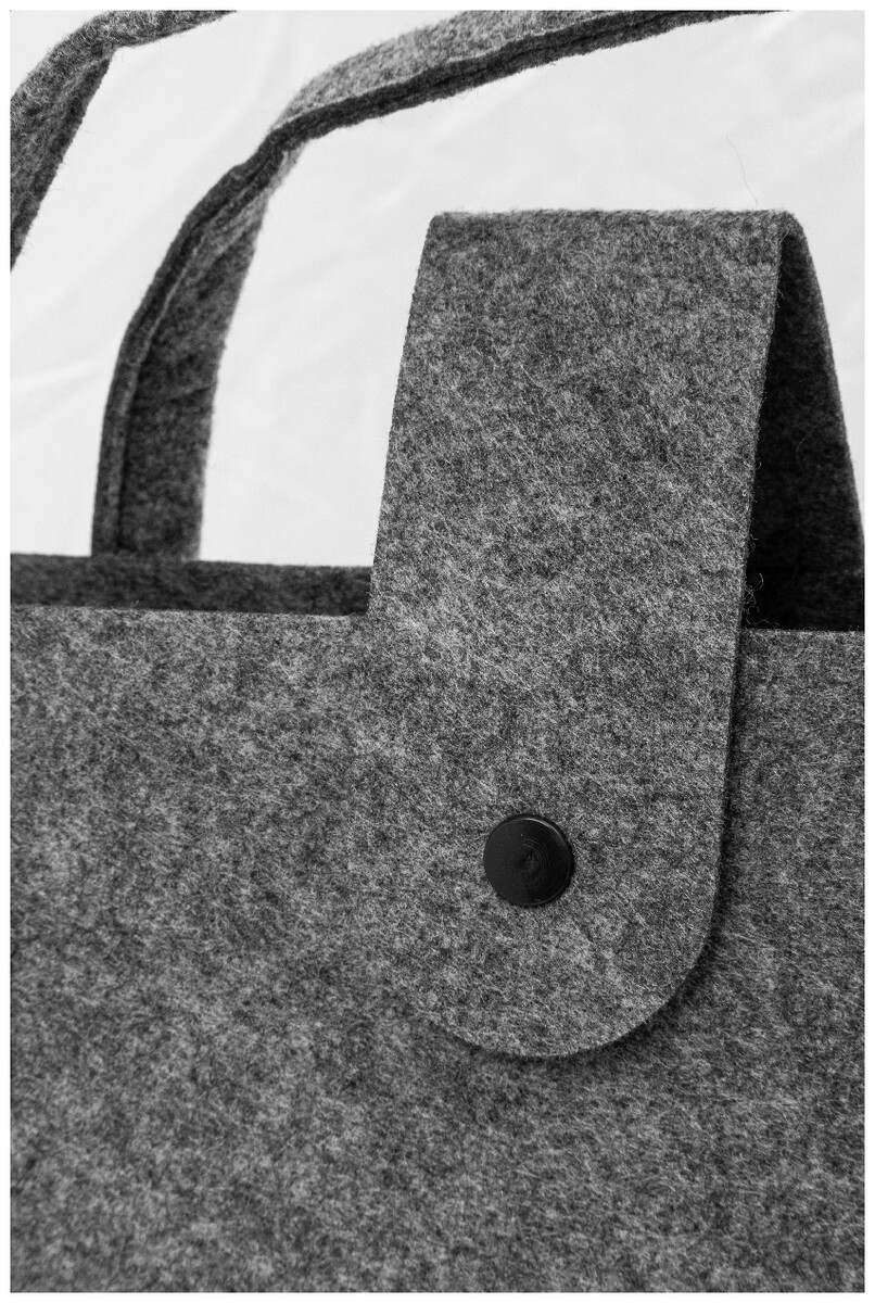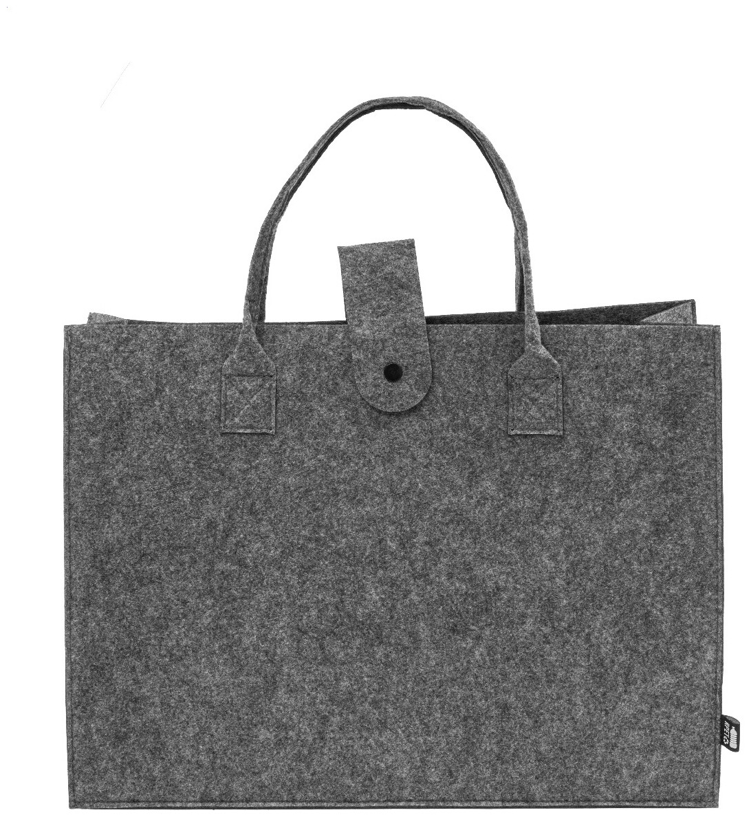 Nákupní taška z RPET plsti s klínkem, zapínáním na knoflíky a krátkými uchy. S výraznou etiketou z RPET.