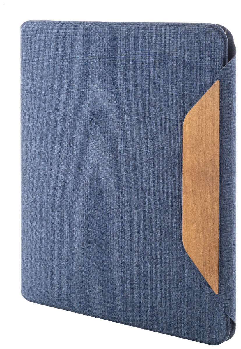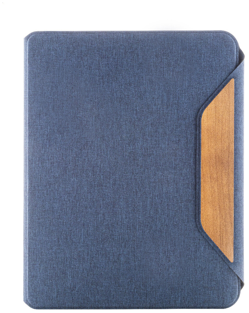 Složka na dokumenty A4 z RPET polyesteru s několika vnitřními kapsami a magnetickým zapínáním s detaily z ořechového dřeva. S linkovaným blokem z recyklovaného papíru s 20 listy.
