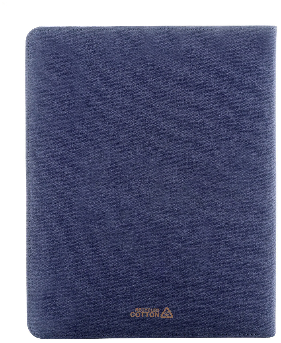 Složka na dokumenty A4 z recyklovaného plátna a recyklované umělé kůže s několika předními a vnitřními kapsami. S blokem na 20 linkovaných listů z recyklovaného papíru. 70 % recyklované bavlny a 30 % RPET polyesteru.