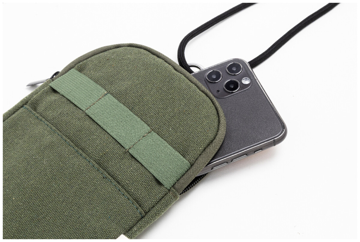 Taška přes rameno z recyklovaného plátna na telefon CanvaFon, zelená