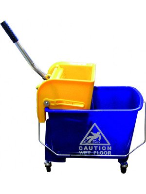 Úklidový vozík s vědrem a ždímačem je praktické řešení pro efektivní mokré čištění. Vědro o objemu 20 litrů je vybaveno dělící přepážkou, která odděluje čistou vodu od znečištěné, což zlepšuje hygienu a kvalitu úklidu. Součástí je také ždímač a kolečka pro snadnou manipulaci.