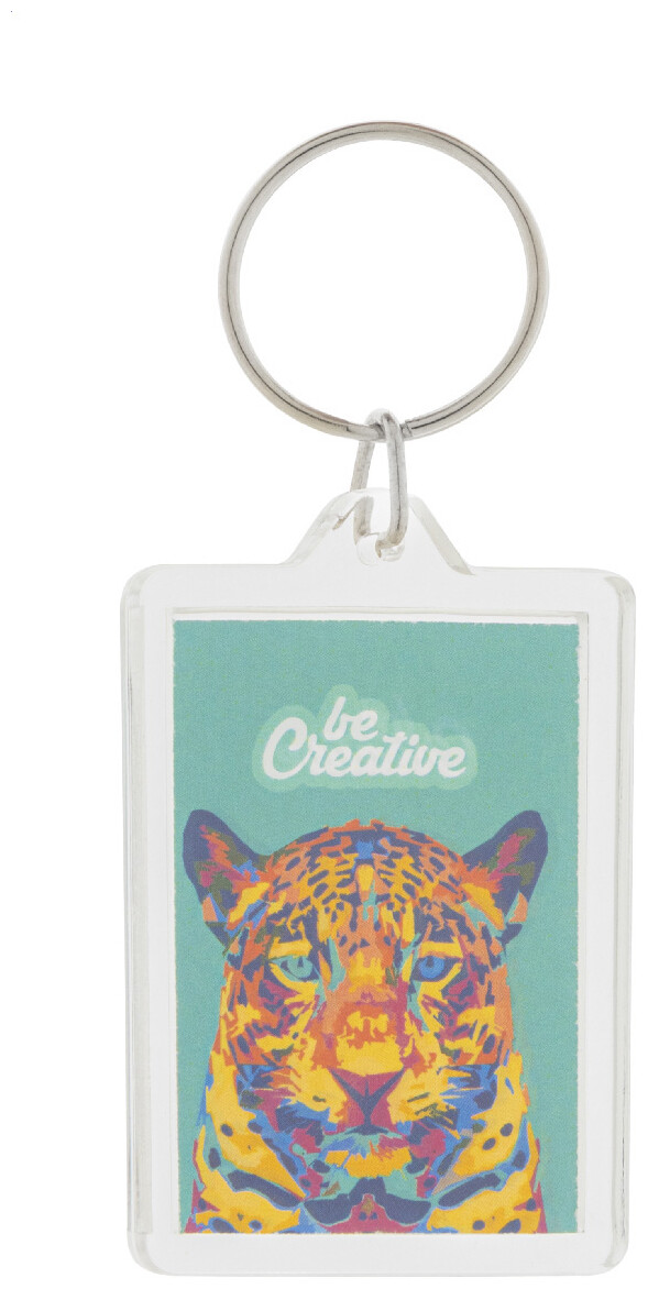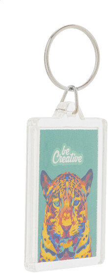 Přívěšek na klíče ve tvaru obdélníku z akrylu s barevnou papírovou vložkou na zakázku a kovovým kroužkem. Cena zahrnuje digitální tisk na obou stranách, nezahrnuje tiskovou přípravu. Min. mn.: 100 ks.