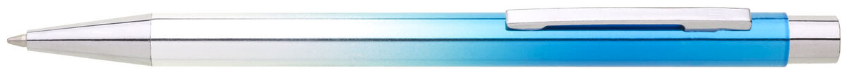 Kovová propiska ALTRO s lesklým povrchem a přechodovou tyrkysovou barvou.