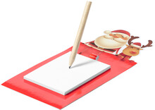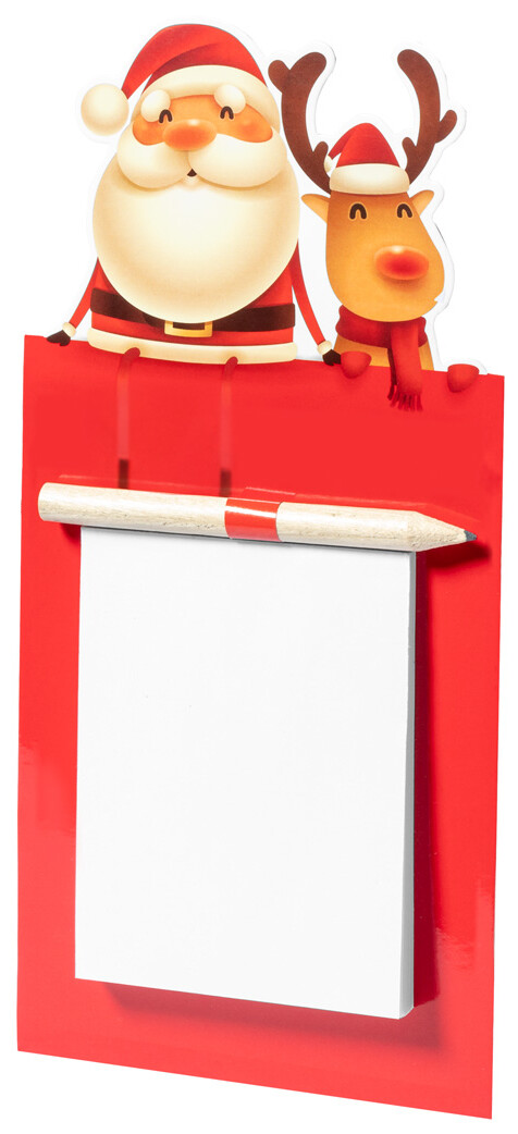 Poznámkový blok s magnetkou se 40 prázdnými listy a figurkou nahoře. Včetně mini dřevěné tužky.