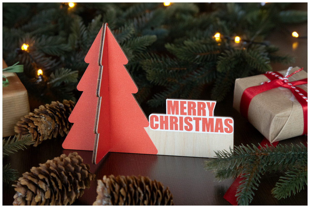 Dekorace na stůl ve tvaru vánočního stromku z březové překližky. Dodáváno rozložené.