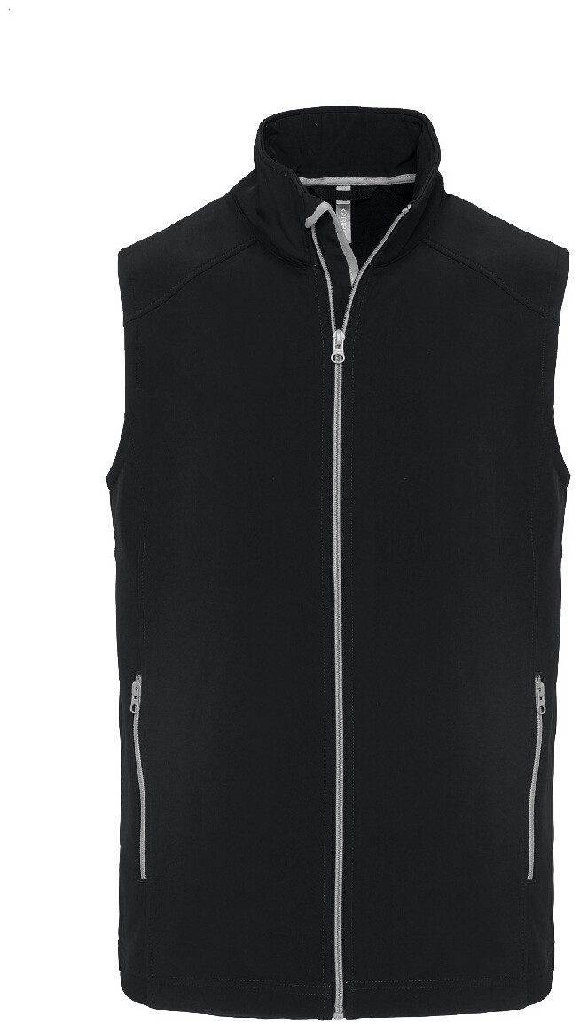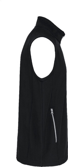Dvouvrstvá softshellová vesta na zip s bočními kapsami na zip. S kontrastními zipy. Vodoodpudivá tkanina. Vnější strana: 95 % polyester a 5 % elastan. Vnitřní strana: 100% polyester micro polar fleece. 300 g/m2. Výrobek značky Kariban.