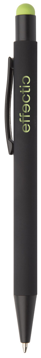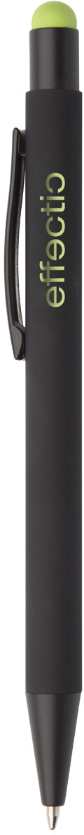 Hliníkové kuličkové a dotykové pero s pogumovanou úpravou a speciálním povrchem pro zrcadlový laser v barvě stylusu, s modrou náplní.