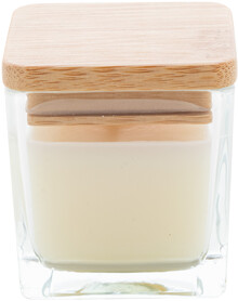 Vosková svíčka na rostlinné bázi ve skleněném držáku s bambusovým víčkem. S 50 gramy vosku. Doba hoření: 8 hodin. V kraftové papírové krabici.