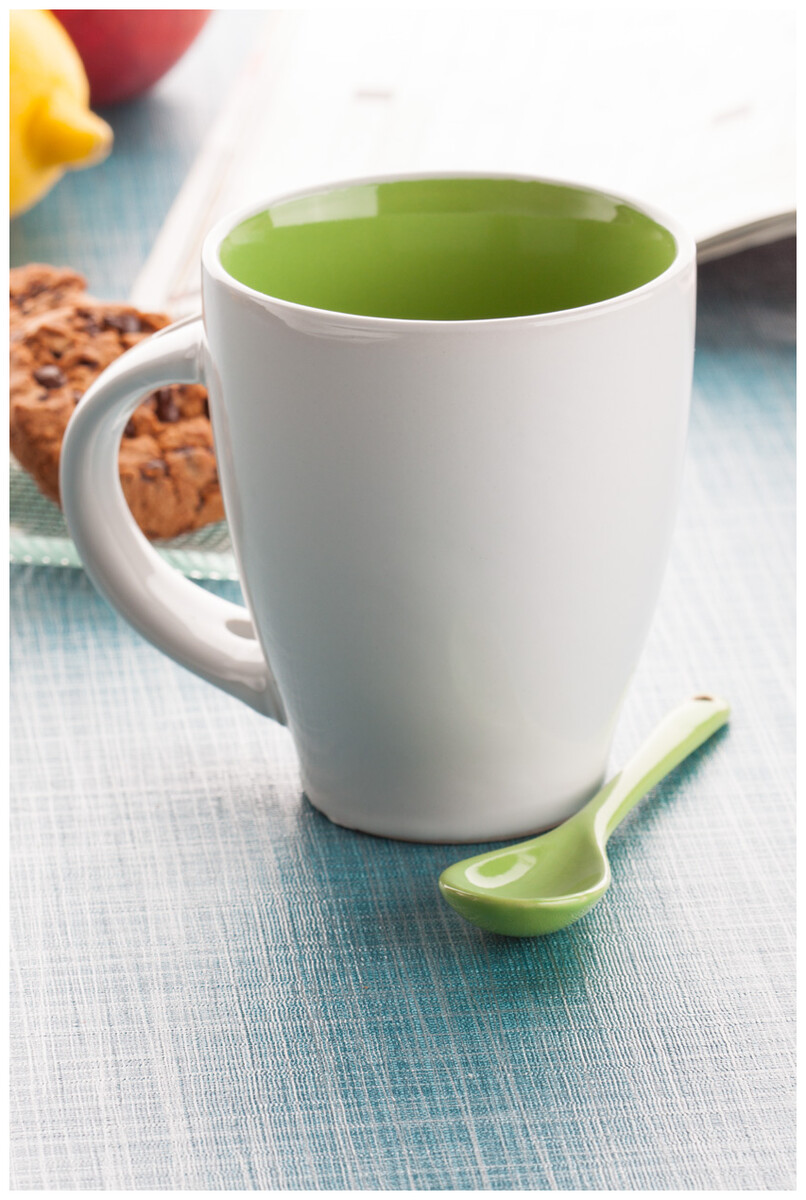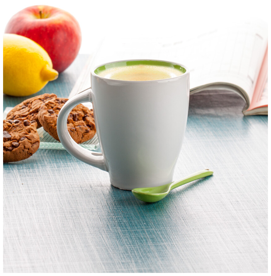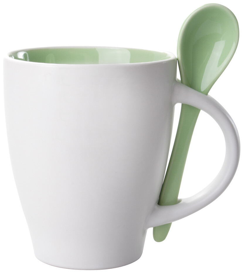 Hrnek se lžičkou - 300 ml Spoon, zelená, bílá