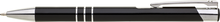 TRIALI hliníková reklamní tužka. Lesklé černé tělo se třemi stříbrnými proužky a chromovými doplňky.Velkoobsahová modrá náplň.
