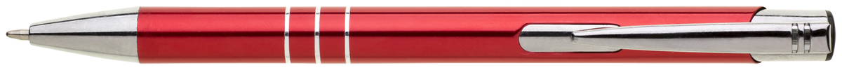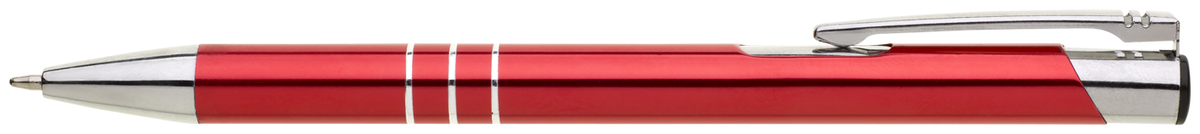TRIALI hliníková reklamní tužka. Lesklé, červené tělo se třemi stříbrnými proužky a chromovými doplňky.